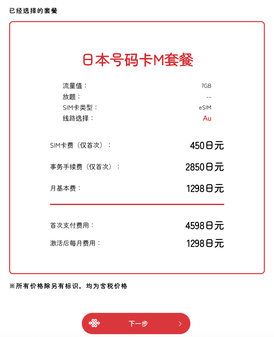 - M套餐包括一些手续费一共4598日元,大概200多人民币,后续1298日元/月,大概60多人民币,后续可以改成S套餐,550日元/月,大概25人民币,还是比较划算的。