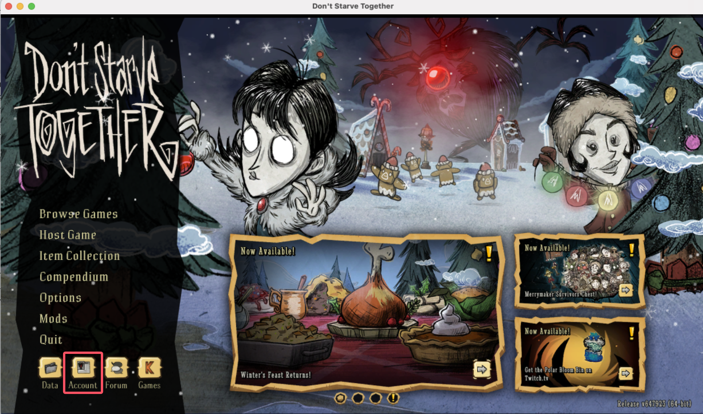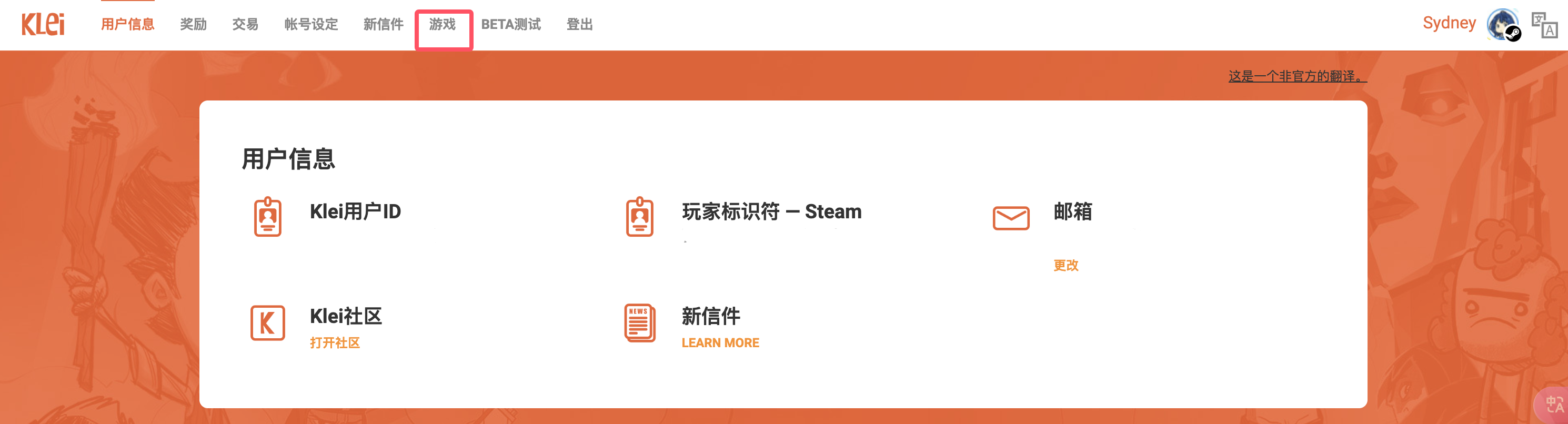 点击左下角的’账号’,会打开你的饥荒联机版账号信息