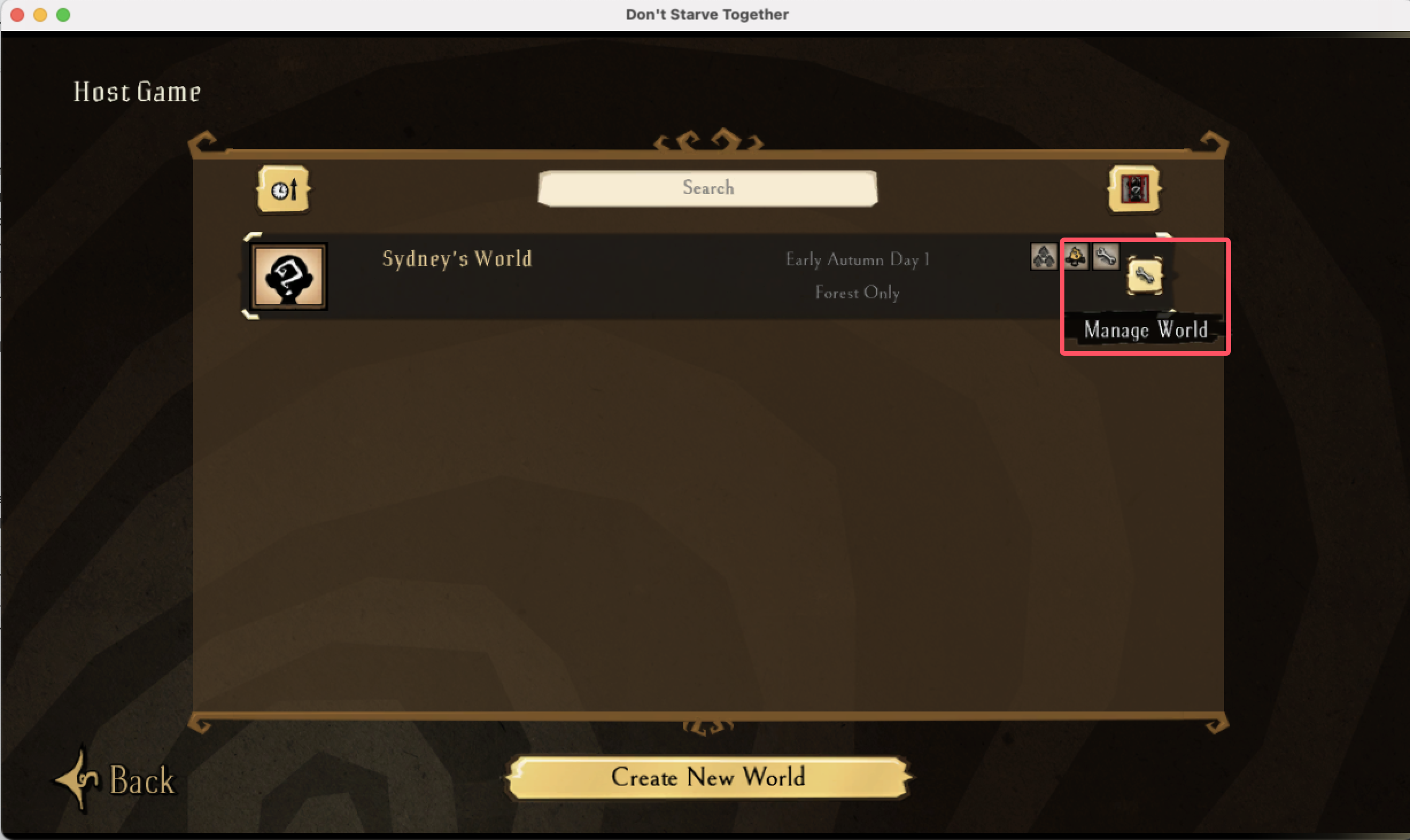 点击《饥荒:联机版》的游戏服务器