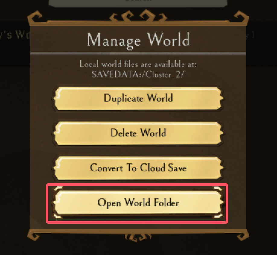 再点击打开世界文件夹。