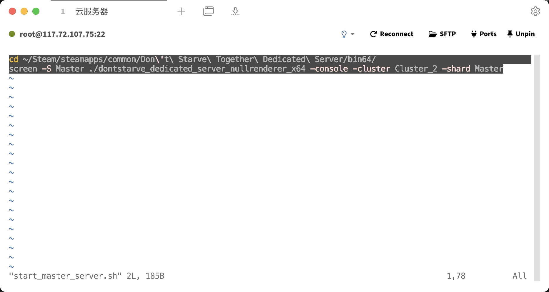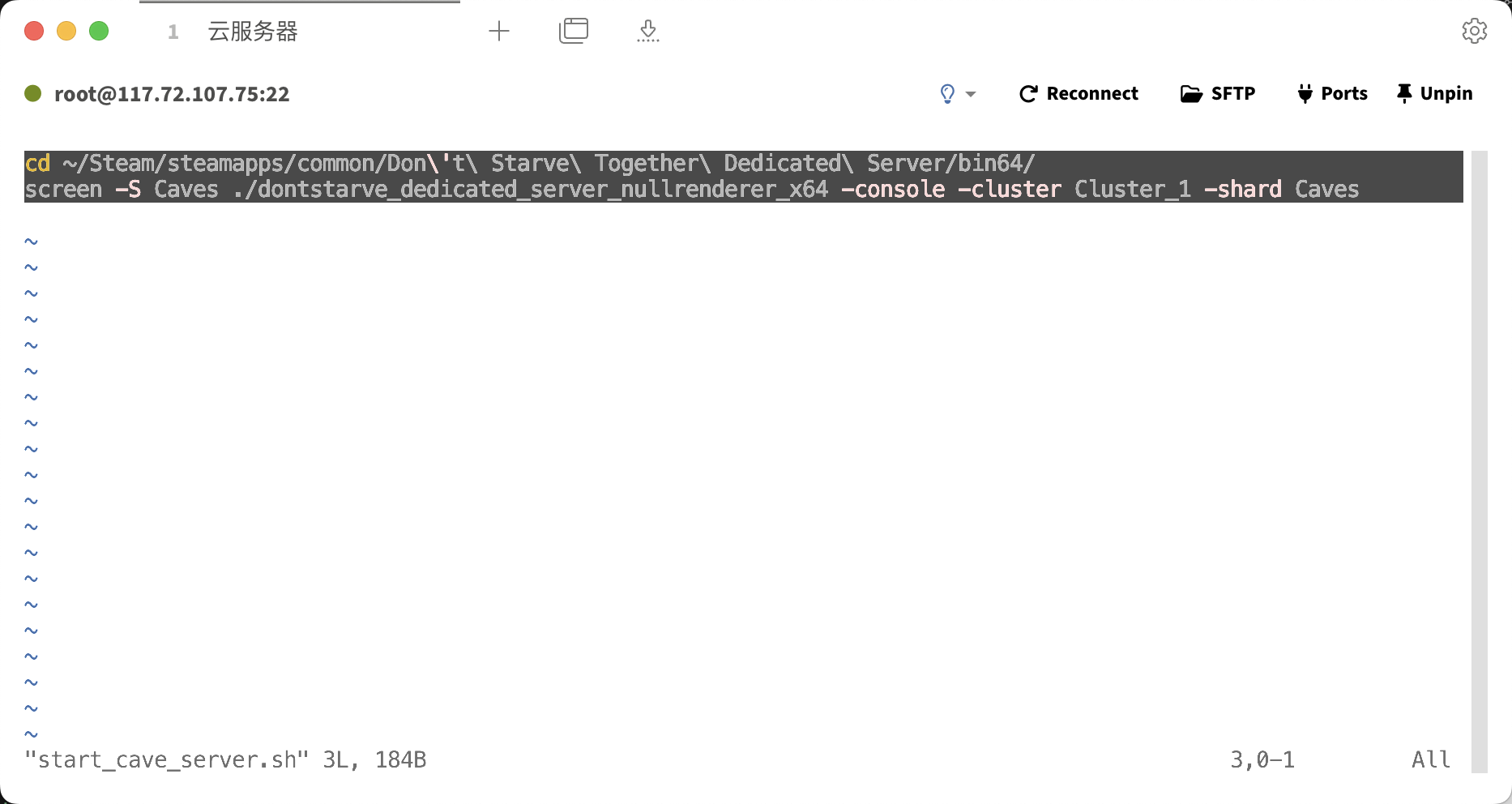 在dont_starve_together_dedicated_server_scripts下创建两个分别名为start_master_server.sh和start_cave_server.sh的可执行文件